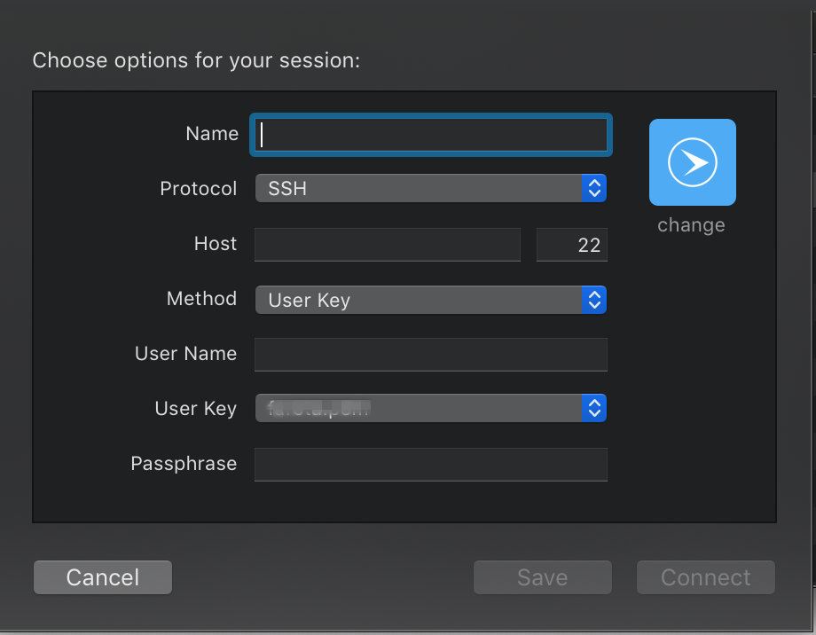 아래와 같은 창이 뜨는데 Method를 UserKey, Password를 선택할수 있다.