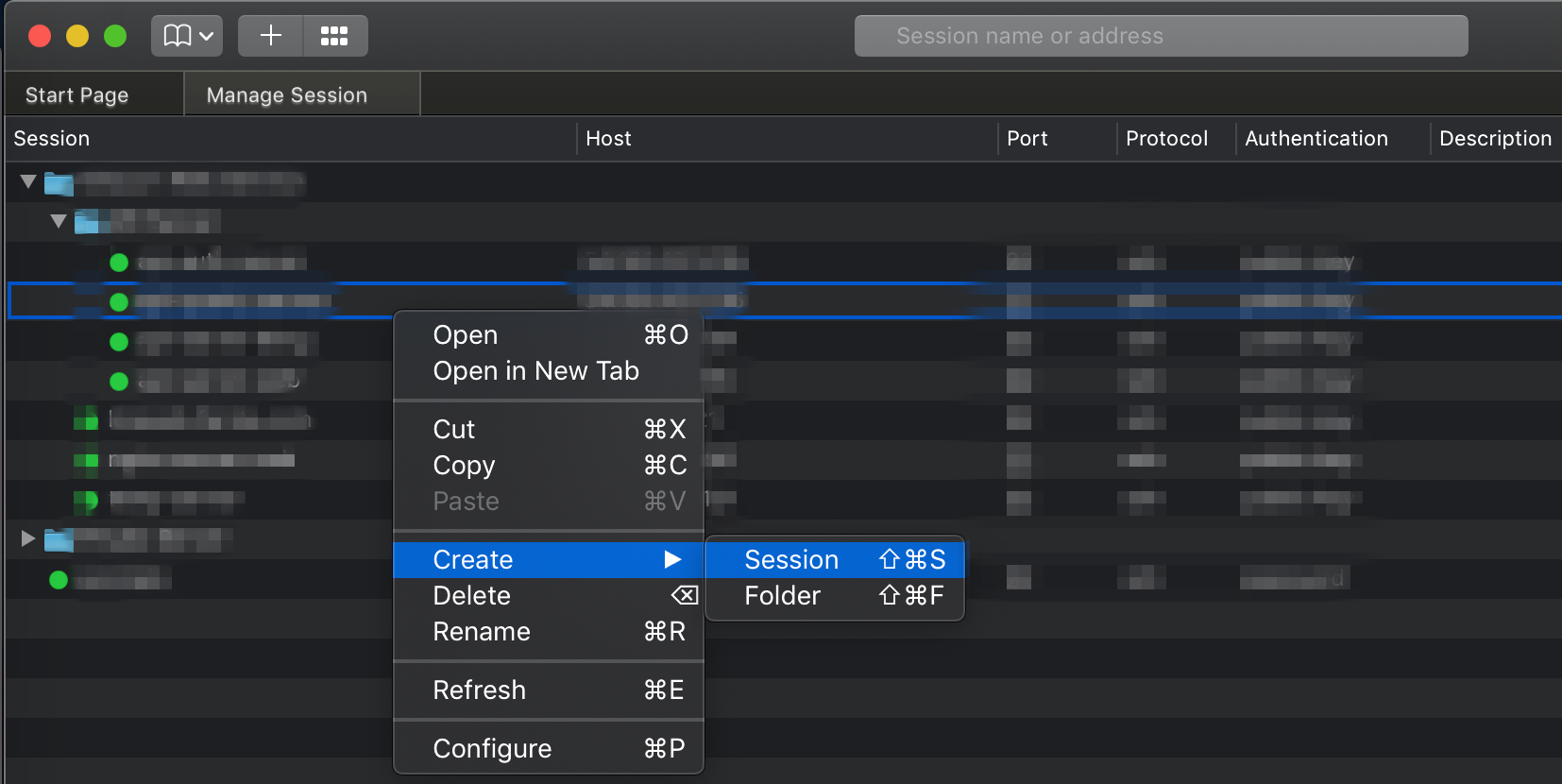 다시 Manage Session으로 이동하고 Session을 생성하고 난뒤 접속하고자 하는 대상을 더블클릭하면